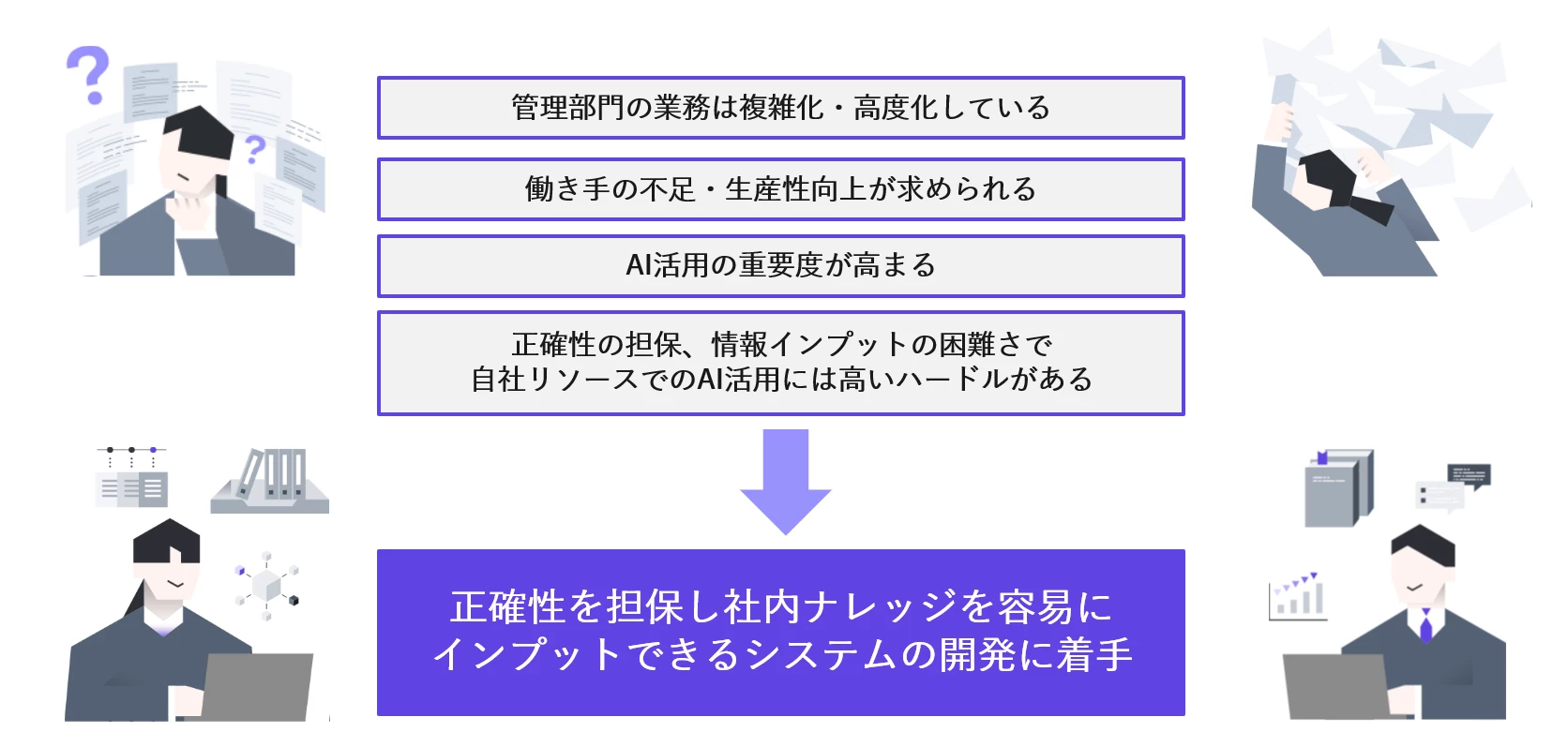 ただし、AIの活用においては、その正確性の確保や社内情報の体系的な整理に課題があることが明らかとなっています。