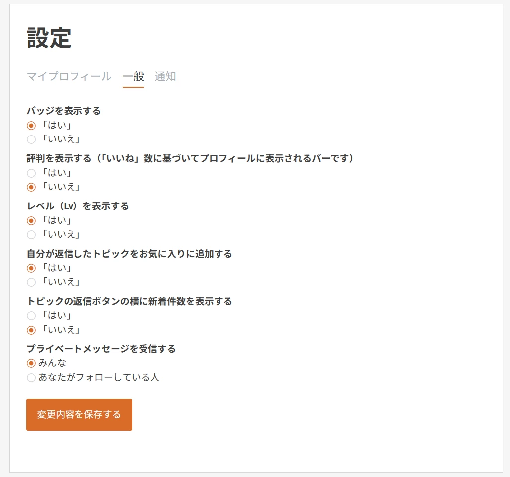 🔎プロフィールの設定「一般」の設定はなんですか?